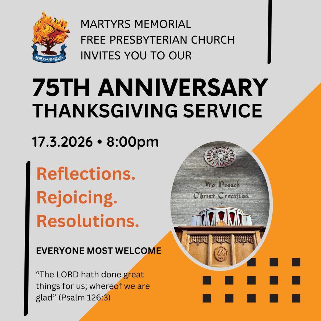 Held at Martyrs Memorial Free Presbyterian Church, BelfastMonday, 17th March 2026 Theme: Separated unto the Gospel of God (Romans 1:1)
