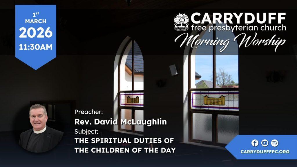 Date: SUN 11:30am 1st March 2026Preacher: Rev. David McLaughlinBible Reference: 1 Thessalonians 5:7-8 Podcast Sermon Summary The Spiritual Duties of