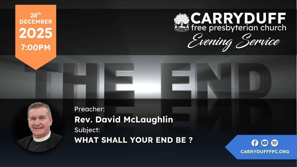 Date: SUN 7:00pm 28th December 2025Preacher: Rev. David McLaughlinBible Reference: 1 Peter 4:17 For the time is come that judgment