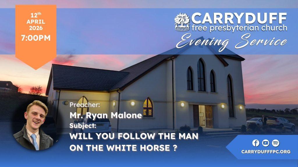 Date: SUN 7:00pm 12th April 2026Preacher: Mr. Ryan MaloneBible Reference: Revelation 19:11-16 Podcast Sermon Summary Will You Follow the Man […]