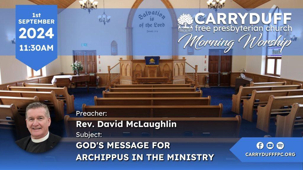 Date: SUN 11:30 AM 25th August 2024Preacher: Rev. David McLaughlinBible Reference: Colossians 4:15 Salute the brethren which are in Laodicea,