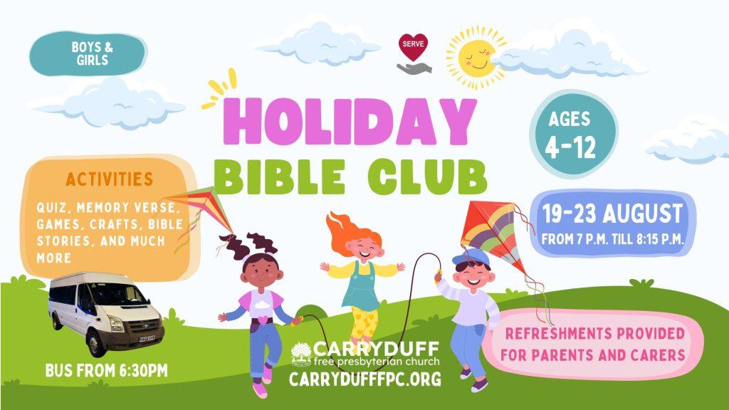 We would like to invite all children from ages 4-12 to come to our Holiday Bible Club from 19th –