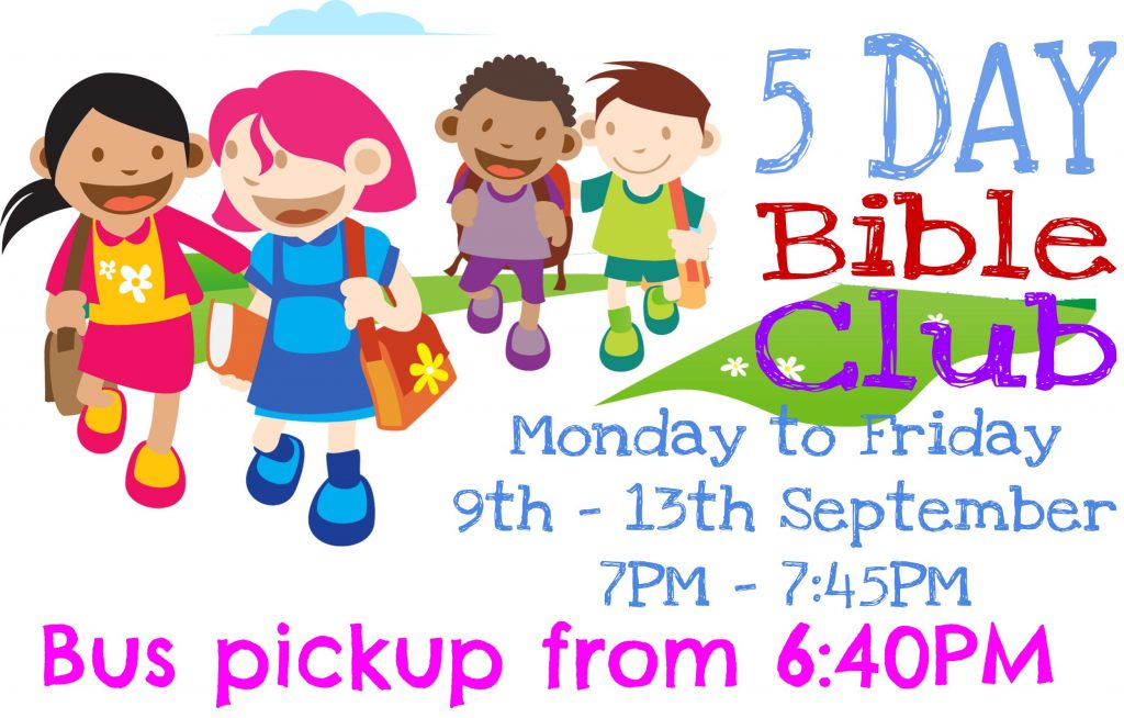 Another week of evening bible clubs commences on Monday 9th September at 7pm and continues through to Friday, each evening