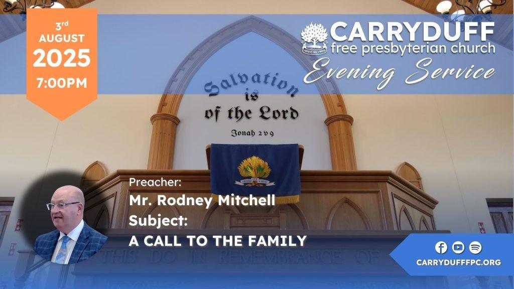 Date: SUN 7:00pm 18th January 2026Singing & Testimony: James McCosh – Elder, Ballymena FPCBible Reference: Acts 16:31 And they said,