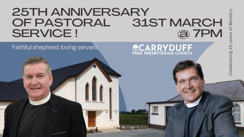 On Sunday 7th July 2024, special long service presentations were made at Carryduff Free Presbyterian Church. Mr. William Smith, outgoing