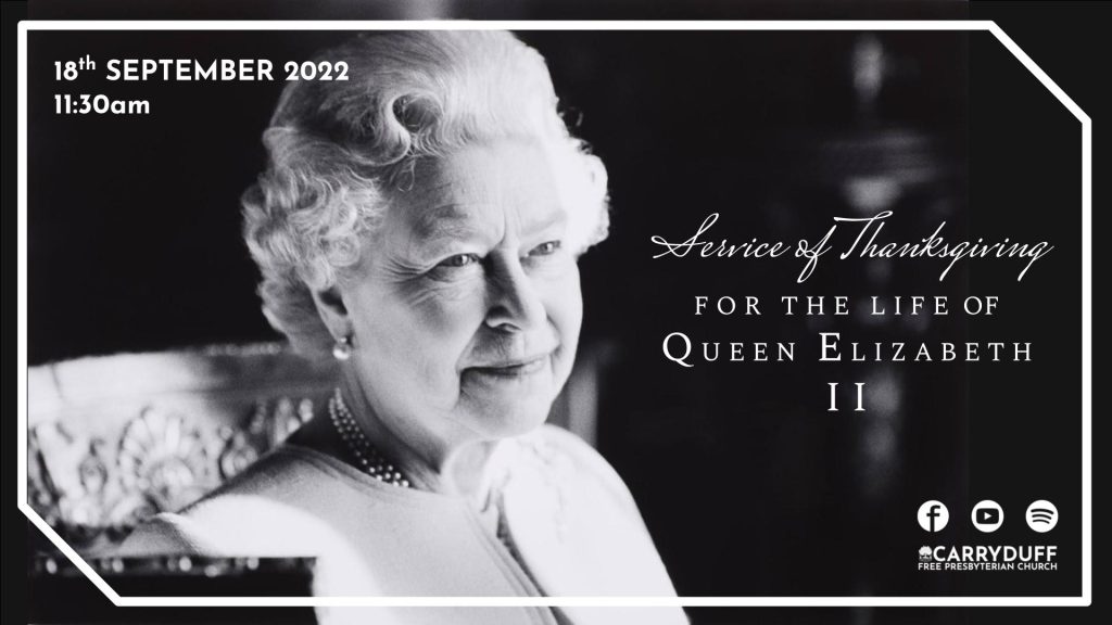 Carryduff Free Presbyterian Church will have a Service of Thanksgiving for the life of Queen Elizabeth II next Sunday morning,