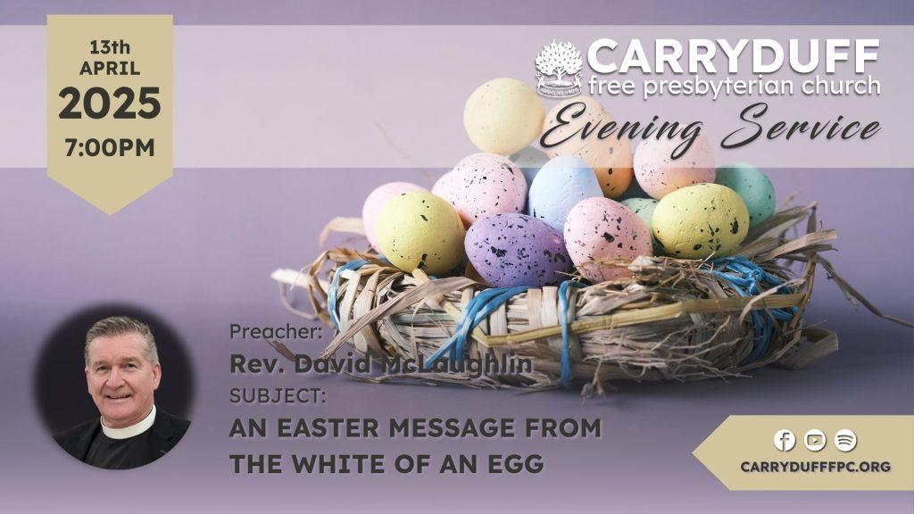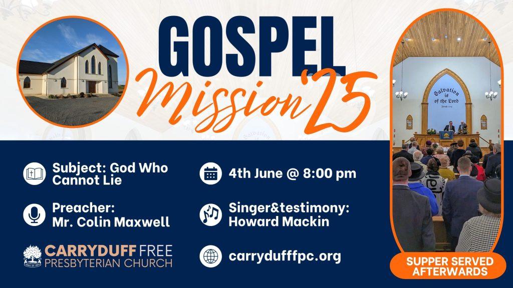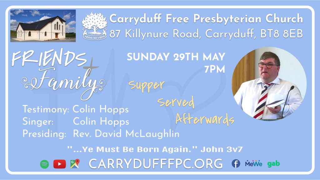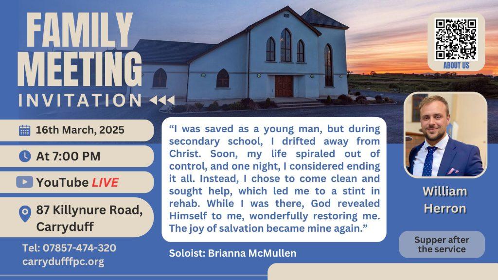 Come and hear Sam’s story at Carryduff Free Presbyterian Church or watch on YouTube.