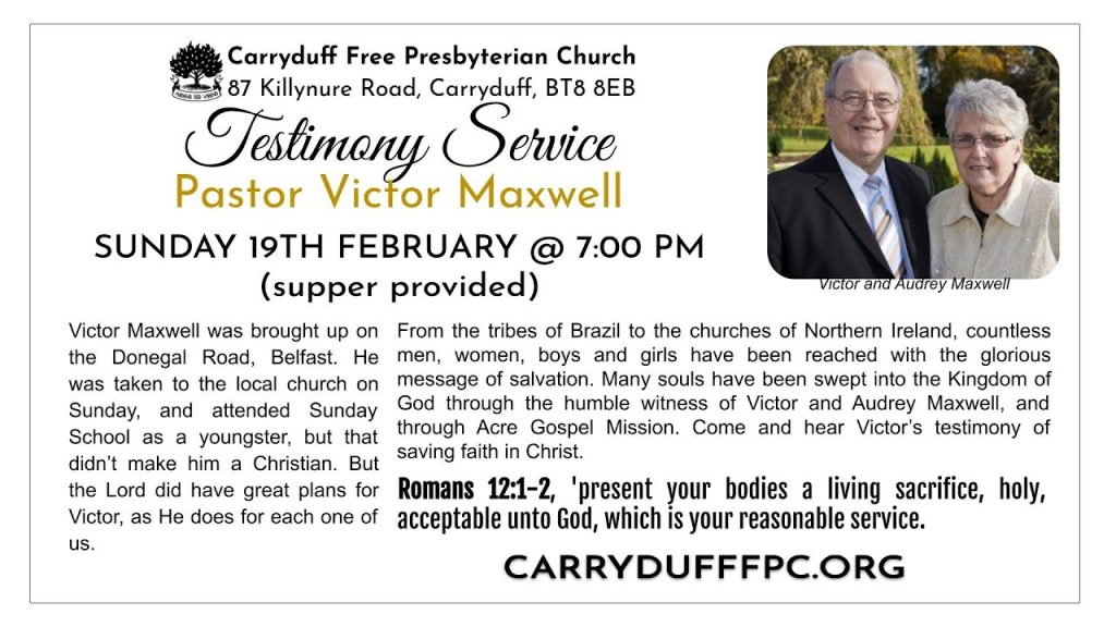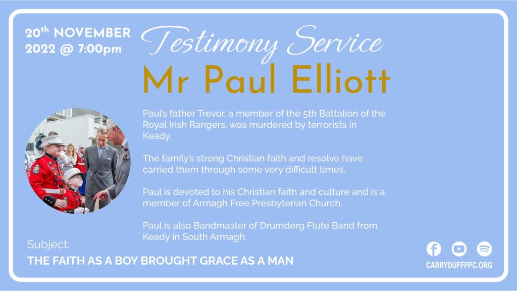 Testimony: Rev. David McLaughlin, minister of Carryduff Free Presbyterian Church