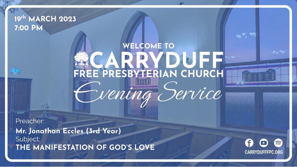 Date: Sun PM 19th March 2023Preacher: Jonathan EcclesBible Reference: 1 John 4:9 In this was manifested the love of God