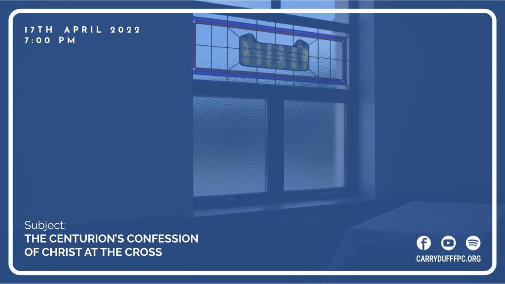Date: Sun 7:00PM 17th April 2022Preacher: Rev. David McLaughlinBible Reference: Mark 15:39 And when the centurion, which stood over against