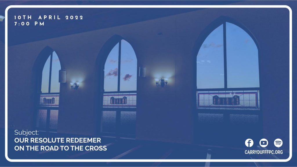 Date: Sun 7:00PM 10th April 2022Preacher: Rev. David McLaughlinBible Reference: Isaiah 50:7 For the Lord God will help me;therefore shall