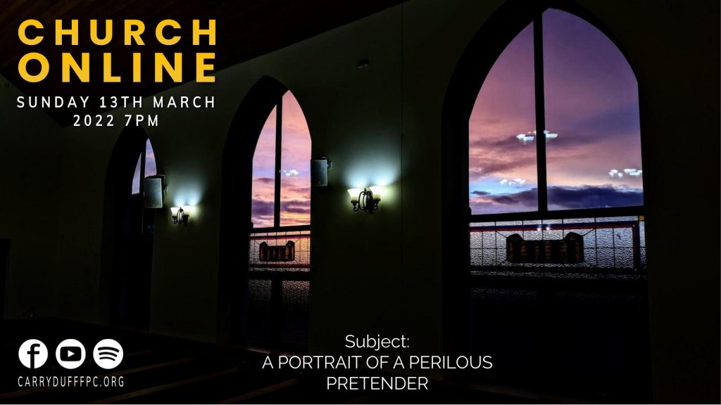 Date: Sun 7:00 PM 20th March 2022Preacher: Rev. David McLaughlinBible Reference: Matthew 24:4-5 And Jesus answered and said unto them, […]