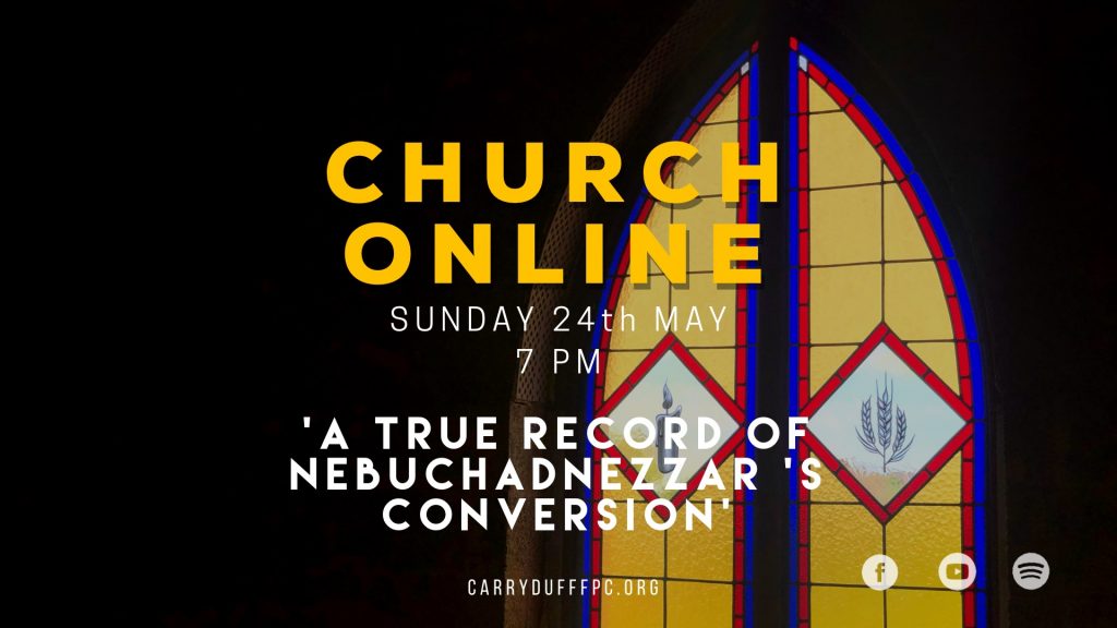 Date: Sun PM 24th May 2020Preacher: Rev. David McLaughlinBible Reference: Daniel 4:1-2 Nebuchadnezzar the king, unto all people, nations, and