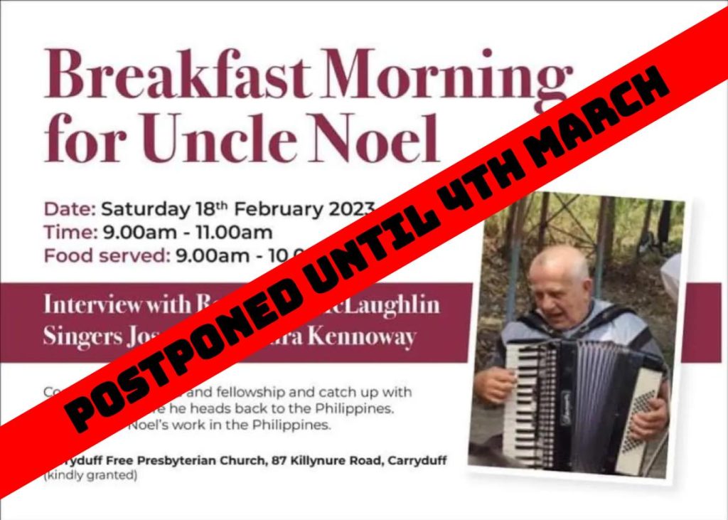 Due to unforeseen health problems, this breakfast morning has been postponed.