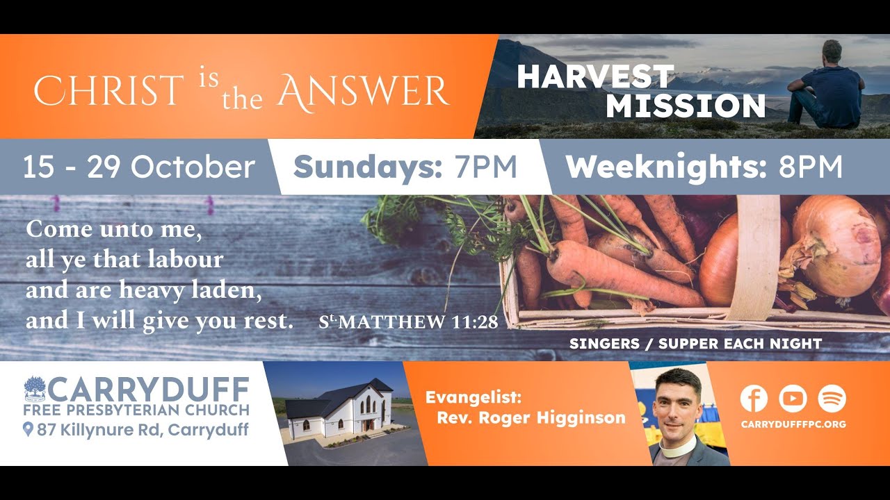 We would like to invite you to our Harvest Mission beginning on Sunday 15th October at 7pm and continuing weeknights at 8pm. Everyone is welcome, please come and bring a friend, hear the great message of the Gospel…